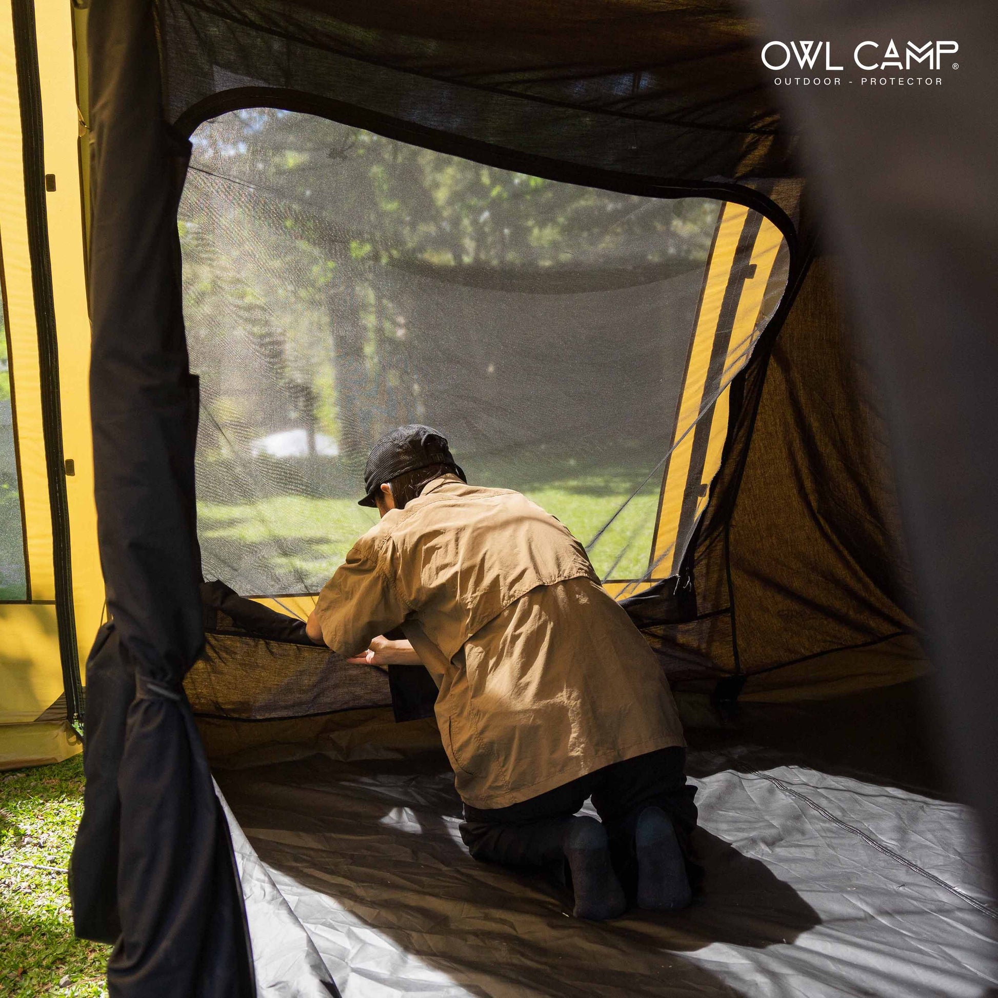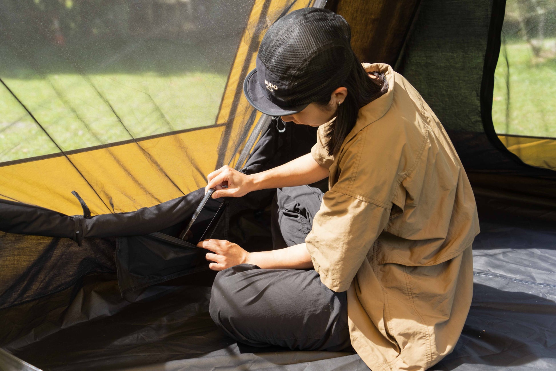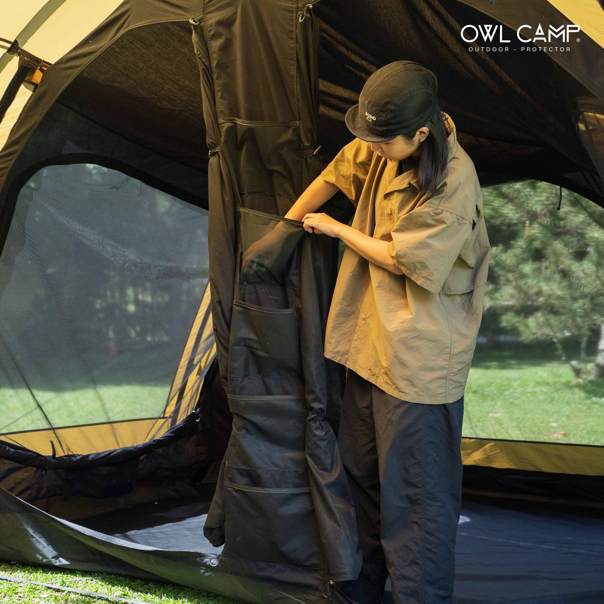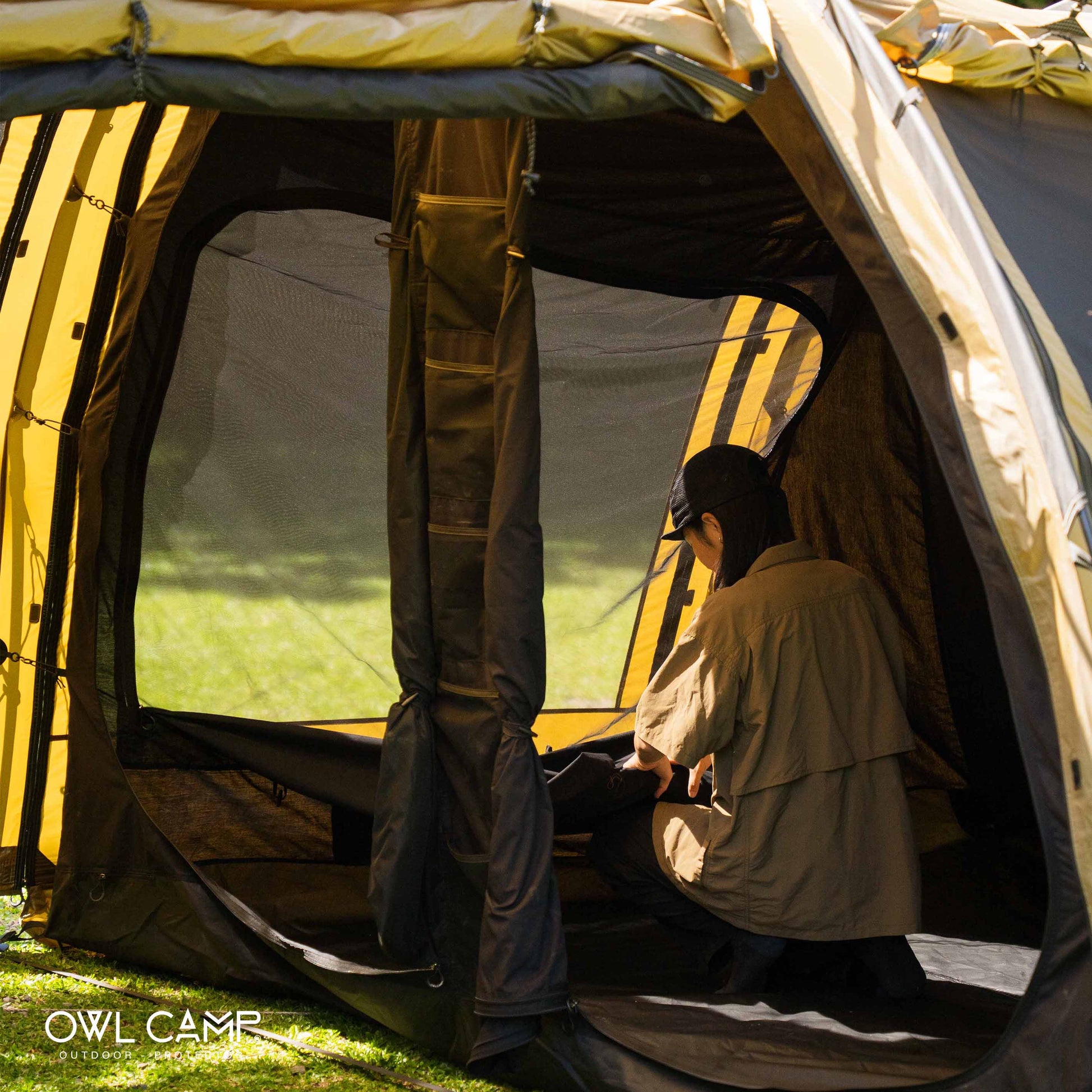 アウター・インナー共に360度全方位にメッシュ窓を配置。寝室部分の天井高は200cmと高く、圧迫感はゼロ。XLサイズのマットを敷いても、家族5人でゆったり眠れる広さです。 - 利便性を追求したディテール