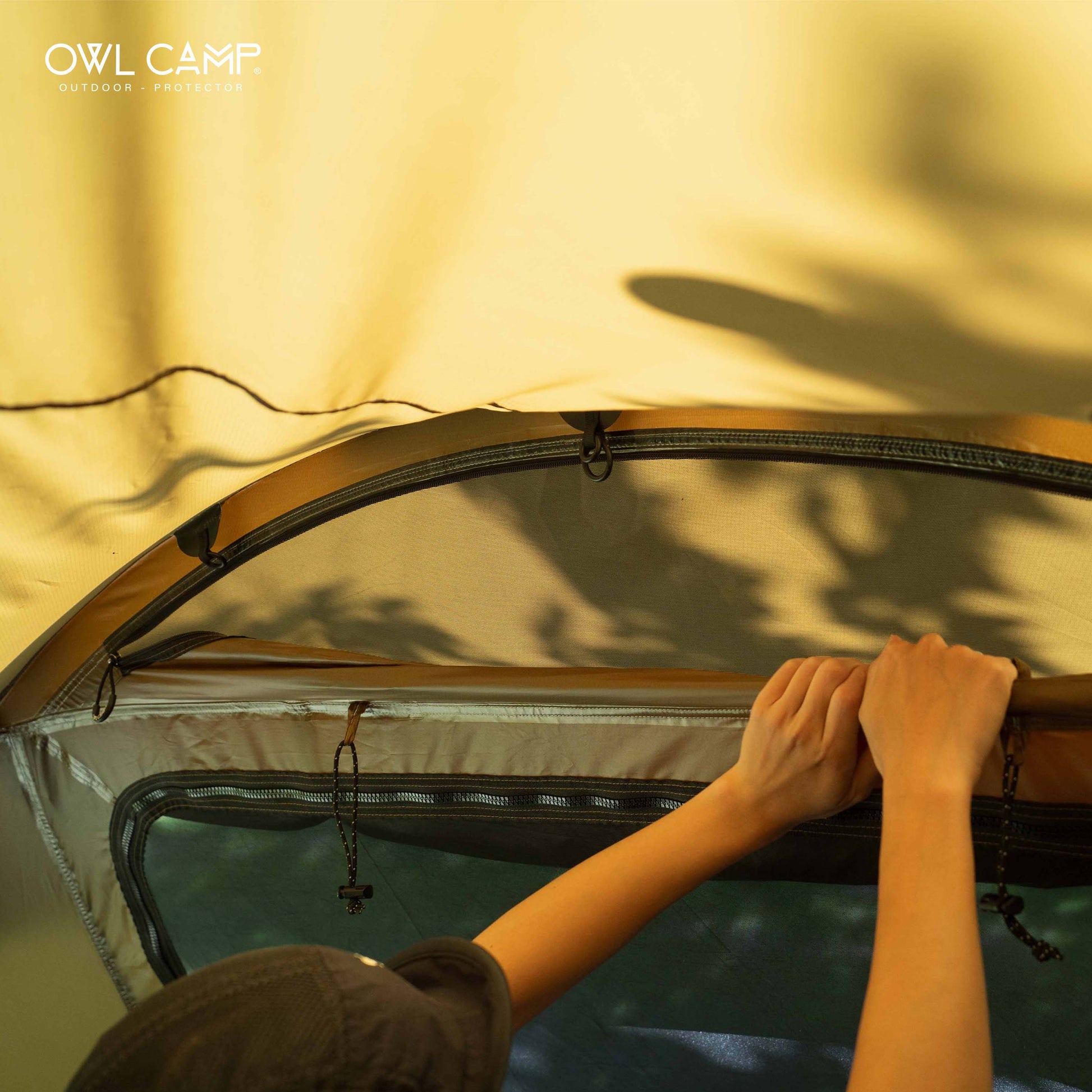 前庭の特殊拡張設計により、かがまずに直立したまま出入りが可能。メイン生地には独占採用の「75D六角織紋(ハニカム)リップストップ」を使用し、片面シリコンコーティングによる厚みと滑らかな質感を実現しました。 - 革新的なTC素材のインナーテント