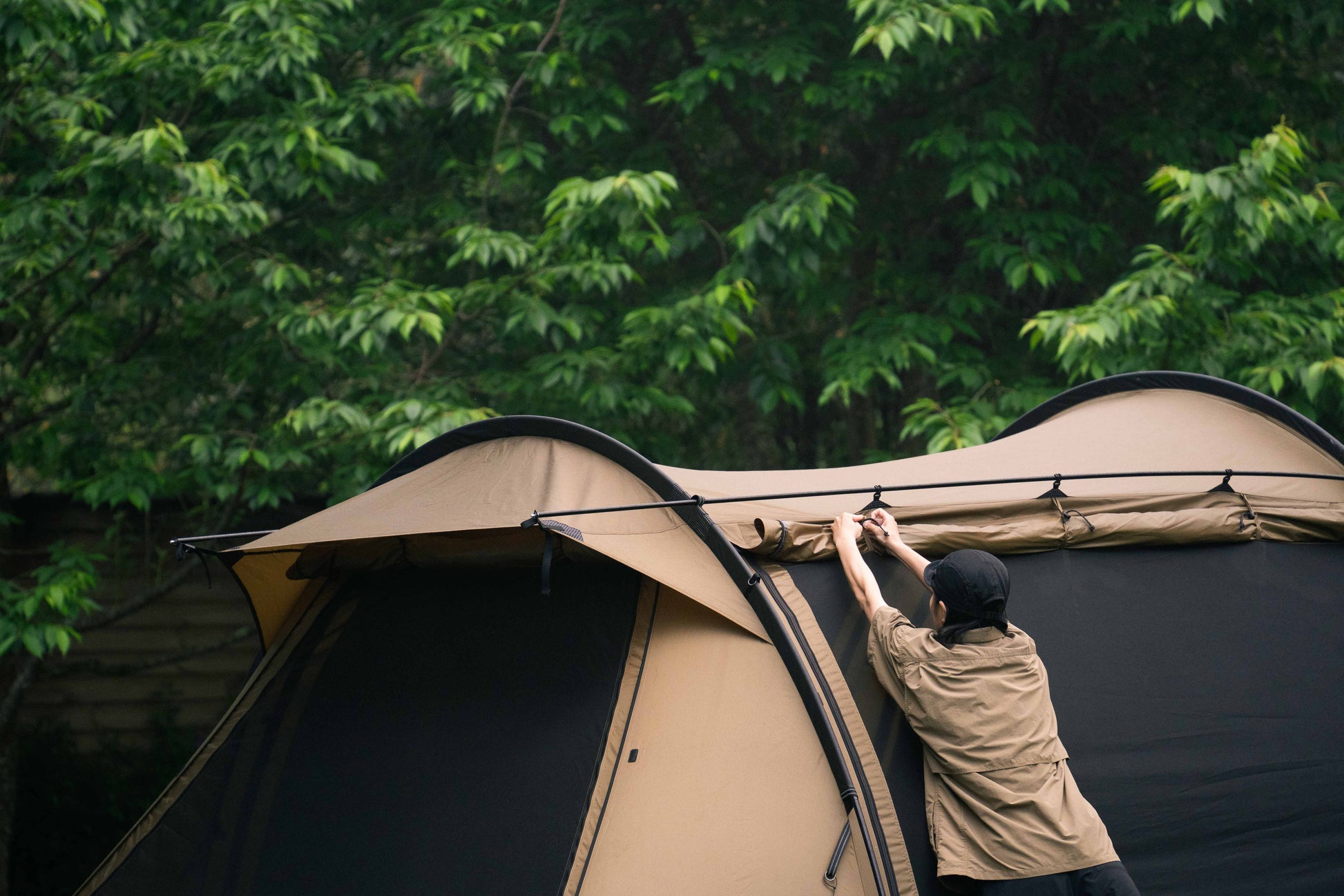独自設計により、リビングスペースを通常の3倍まで拡張可能。圧倒的な広さと生地の質、細部の仕上がりに徹底的にこだわりました。 - 過酷な天候と冬キャンプに対応