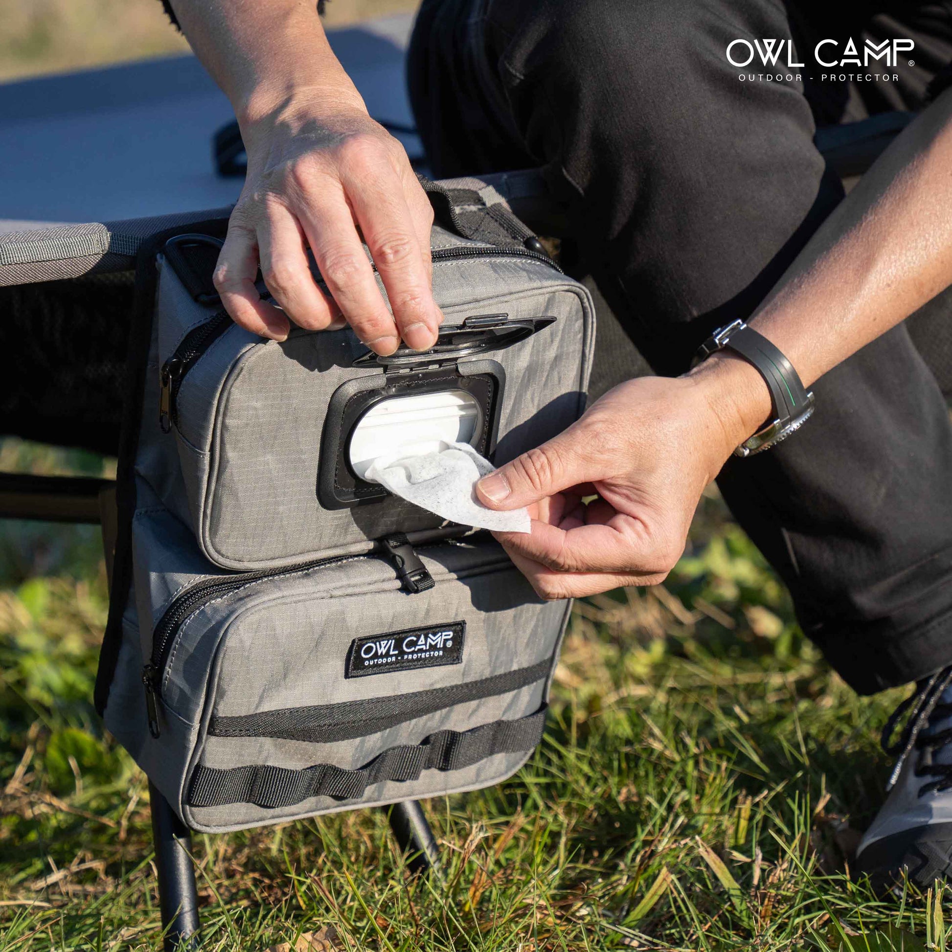 ドライティッシュとウェットティッシュの両方を一つに収納可能。キャンプ中のあらゆる清掃ニーズをこれ一箱でカバーします。 -